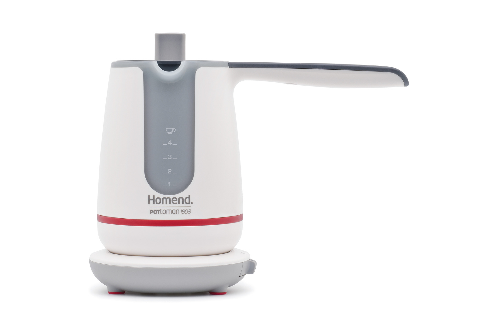 Traditionally, Turkish coffee is brewed in a copper pot on an open fire. This ritual is an integral part of Turkish culture. Pottoman is an electric Turkish coffee maker, which significantly simplifies the process of brewing coffee. The water level is visible from outside making cumbersome measuring unnecessary. The heater coil technology accelerates the brewing process and supports the emergence of an aromatic head of froth. The contour represents a synthesis of modern trends and the shape of a traditional copper pot.