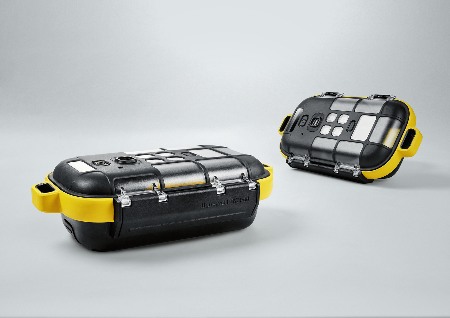 The Honeywell BW Pod, whose design is clearly aligned with the design language of the manufacturer, is an accessory for protecting gas detectors and warning devices from dirt and damage. The robust housing with integrated pumped air sampling system safely protects the detector, yet keeps it clearly visible through the window structure of the BW pod. The harness attachments not only simplify operation in difficult-to-access wells and other cavities, but also facilitate the effective introduction of buoyant accessories into flooded work areas. Replaceable filters ensure quick serviceability in the field.