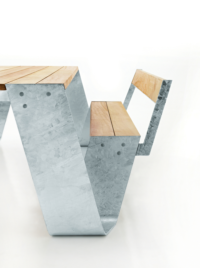 Hopper garden furniture is an example of a very successful re-design of the classic beer-garden bench. Based on the traditional “get-together” around a table, designer Dirk Wynants has produced an outdoor product with its very own style. This sculptural piece of garden furniture invites one to sit down and is functional and hardwearing in equal measure.