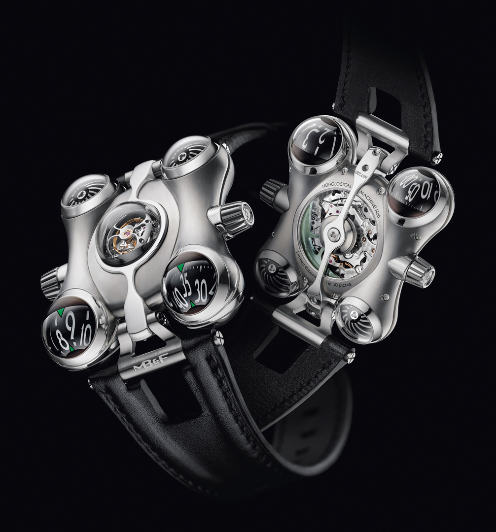 Inspired by the world of science fiction, this wristwatch stages its own cosmos. It dissolves the boundaries of classical wristwatch design and advances it through an exciting futuristic approach. The distinctive shape of the clockwork simply fascinates and its mechanism mesmerises. Featuring the appearance of a friendly being from another world, this wristwatch seems to tell its own tale – a world of adventure for the beholder.