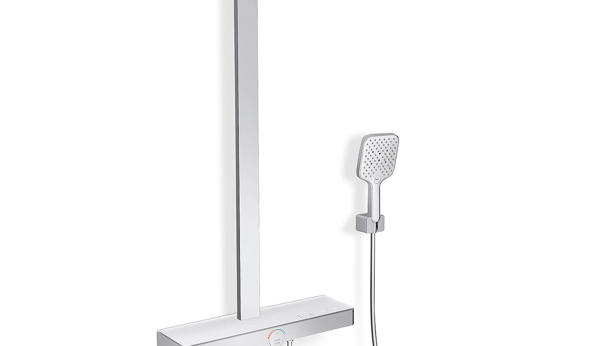 The design of the Hover shower embodies timeless elegance. It effectively blends into different bathroom interiors and furthermore scores with easy handling.