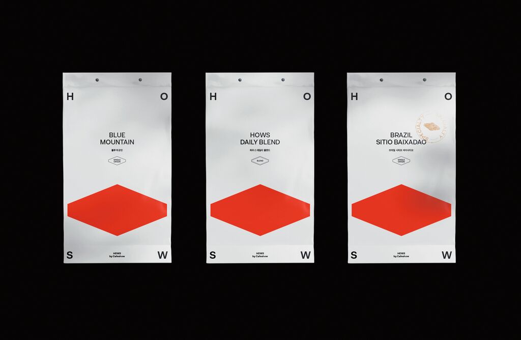 HOWS by Cafeshow is a South Korean coffee house with high quality standards that serves and sells its own coffee brand. The conception of the brand design focused on the space where coffee connoisseurs meet. In the search for a symbol that was simple and easy to understand, the choice fell on a hexagon, which can represent a three-dimensional space in two dimensions. The symbol can be used by itself, but it is also infinitely expandable when used as a graphic motif. In the logo, the hexagon is combined with four flexibly changing glyphs located at each vertex of a screen or paper, creating an ever-changing visual appearance.