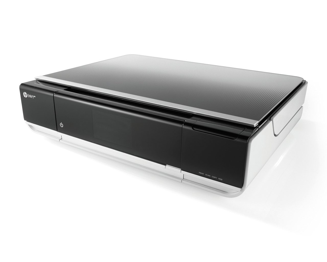 The ENVY 100 is a new brand of printer designed to fit consumers‘ modern life-style. Conceived and designed specifically to inhabit users‘ living spaces, it provides all the functionality of a traditional all-in-one printer in an attractive, compact form. With its premium finishes, it is the perfect complement to any modern living space. With a one touch wireless set up, self contained paper tray, and an automated output tray, the printer creates complete versatility in a more thoughtful package.