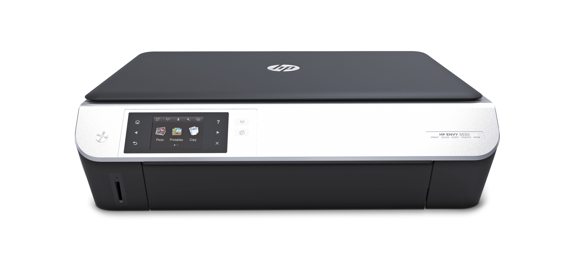 This elegantly designed all-in-one printer produces borderless, lab-quality photos and laser-sharp documents. The device communicates with smartphone, tablet or PC via the Internet and can thus print content or transfer scans from these devices regardless of location. Featuring an automatic duplex function, it saves both time and paper. The printer is comfortably operated via the LCD touchscreen.