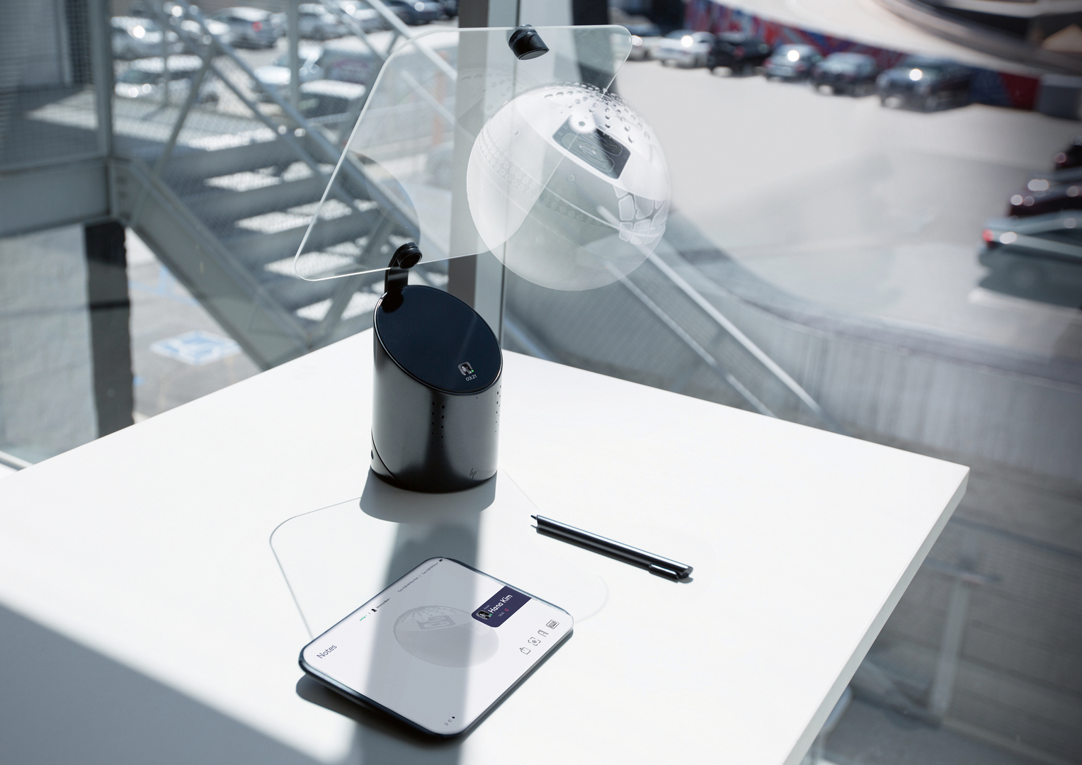 HP Knoq is a project which has been designed to explore the future of computing technologies. It is a remote communication tool allowing creative users to share and review real objects. The device enables 3D communication by using advances in digital hologra-phy. In the course of this project, which was guided by several university pro-fessors and experts, both the physical product and the accompanying digital interfaces and interactions have been conceptualised, pitched, designed and produced.