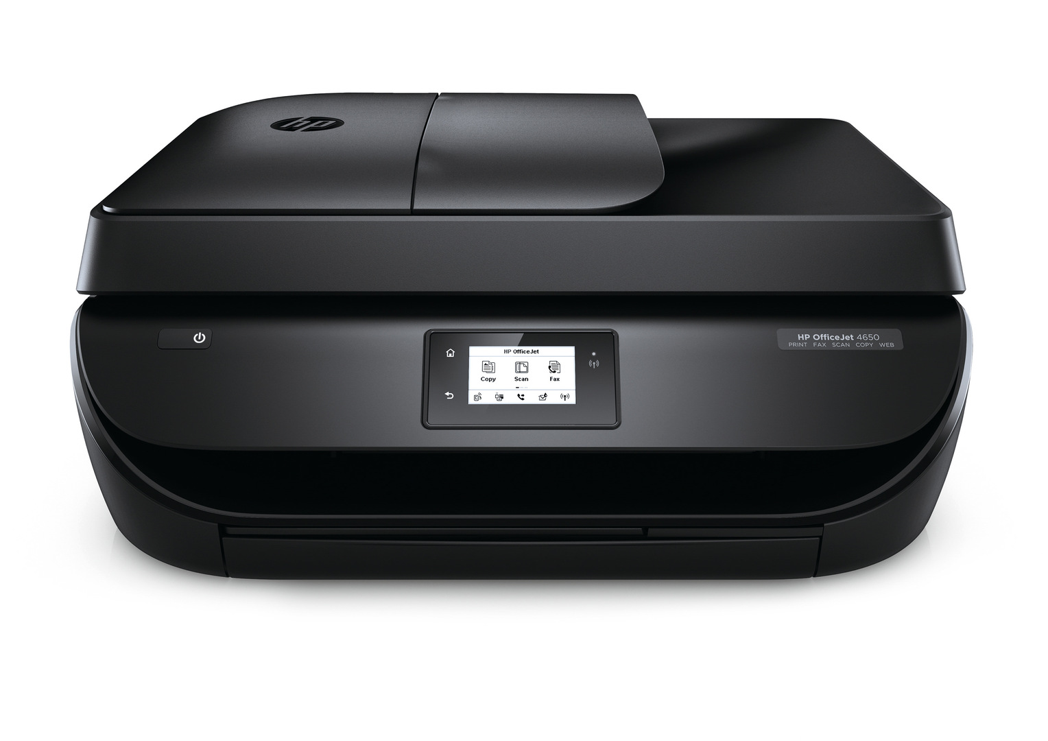 The HP OfficeJet 4650 is a compact all-in-one printer enabling comfortable mobile printing. It is equipped with an automatic document feeder, which can easily be closed when not in use. This contributes to a more elegant appearance and guarantees that no dust or dirt can make its way into the printer. The control panel is conveniently angled in the direction of the user, allowing for easy input of commands or reading of the printer status.