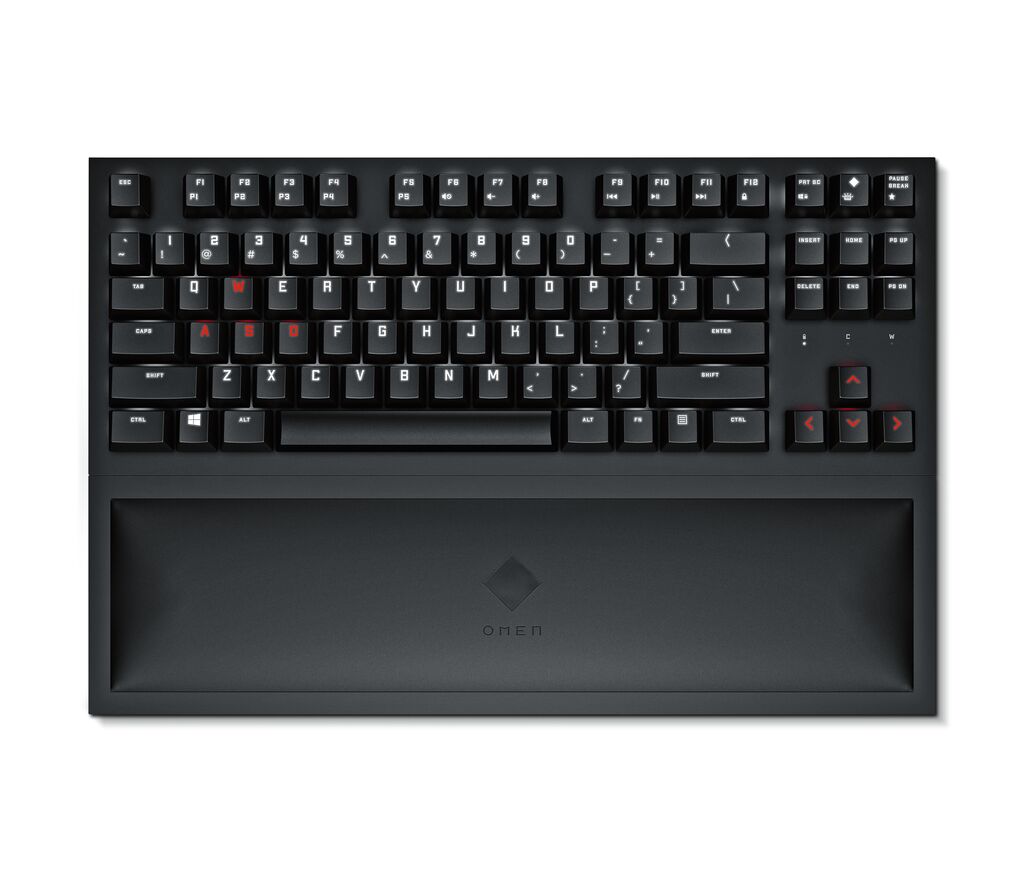 Gamers most often use the WASD keys and the arrow keys. Thus, they often rotate their keyboard by 45 degrees to be able to easily reach both key areas. The HP OMEN Spacer keyboard takes this behaviour into account and does away with the numeric keypad, giving the arrow keys more space on the keyboard. The top row of keys is raised by three degrees compared to the bottom row, and the keycaps have a recess for an optimal typing experience.
