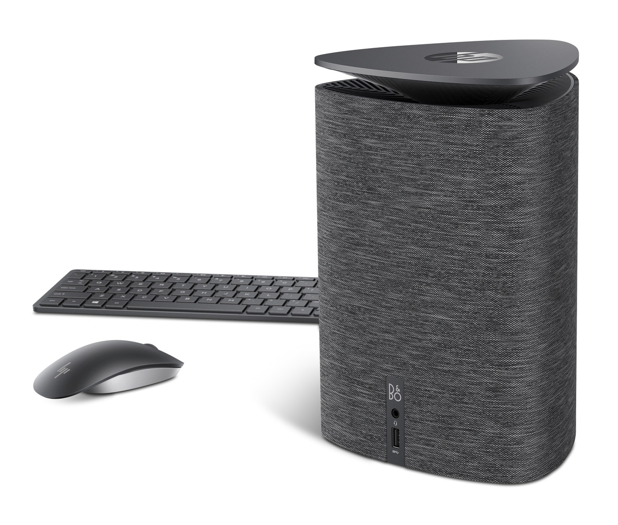 The HP Pavilion Wave is a fully equipped Windows computer for use in the home. Within its triangular form there is room for all components, making the computer 85 per cent smaller than traditional tower PCs. However, it incorporates, high-performance functions, offers 4K video output and supports multiple displays. Its surfaces include premium-quality textile material. Components from Bang & Olufsen guarantee a 360-degree sound experience. Integrated far-field microphones provide hands-free voice activation.
