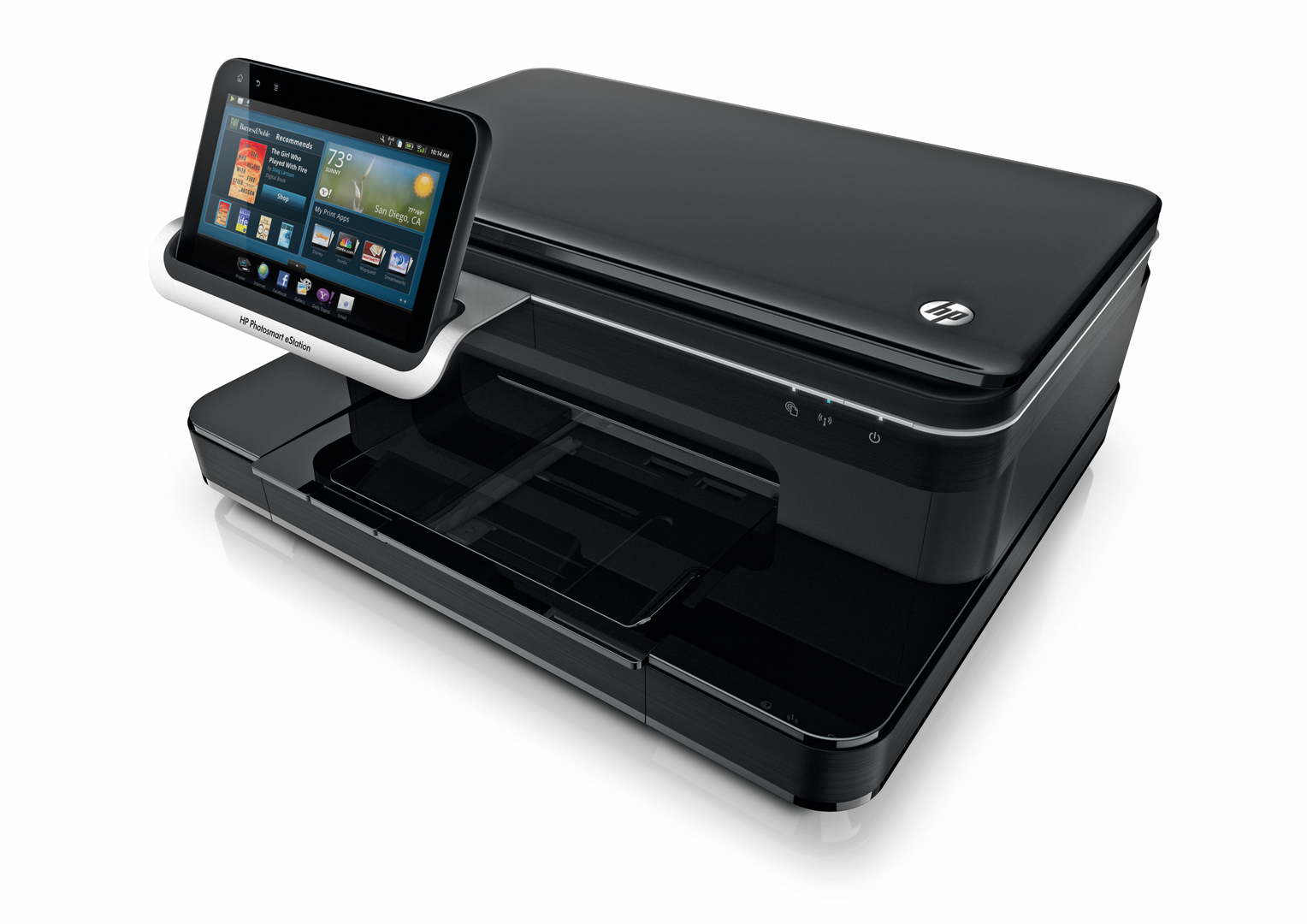 The Photosmart eStation is a distinctively designed, multifunctional device conveying its high-performance technical capabilities in an aesthetically appealing way with its rounded form. The unit is suitable for printing, faxing, scanning and copying and additionally features an Internet connection. Its special characteristic is an innovative, detachable 7” display with associated charging station, offering the functions of a tablet PC. It contains a web browser with applications such as ereader, email, Facebook, music or a photo gallery. When the display is detached from the eStation, a second control panel becomes visible which accommodates additional device control functions. The central design objective was to integrally incorporate the detachable display into the design from the outset rather than to treat it as an independent component part.