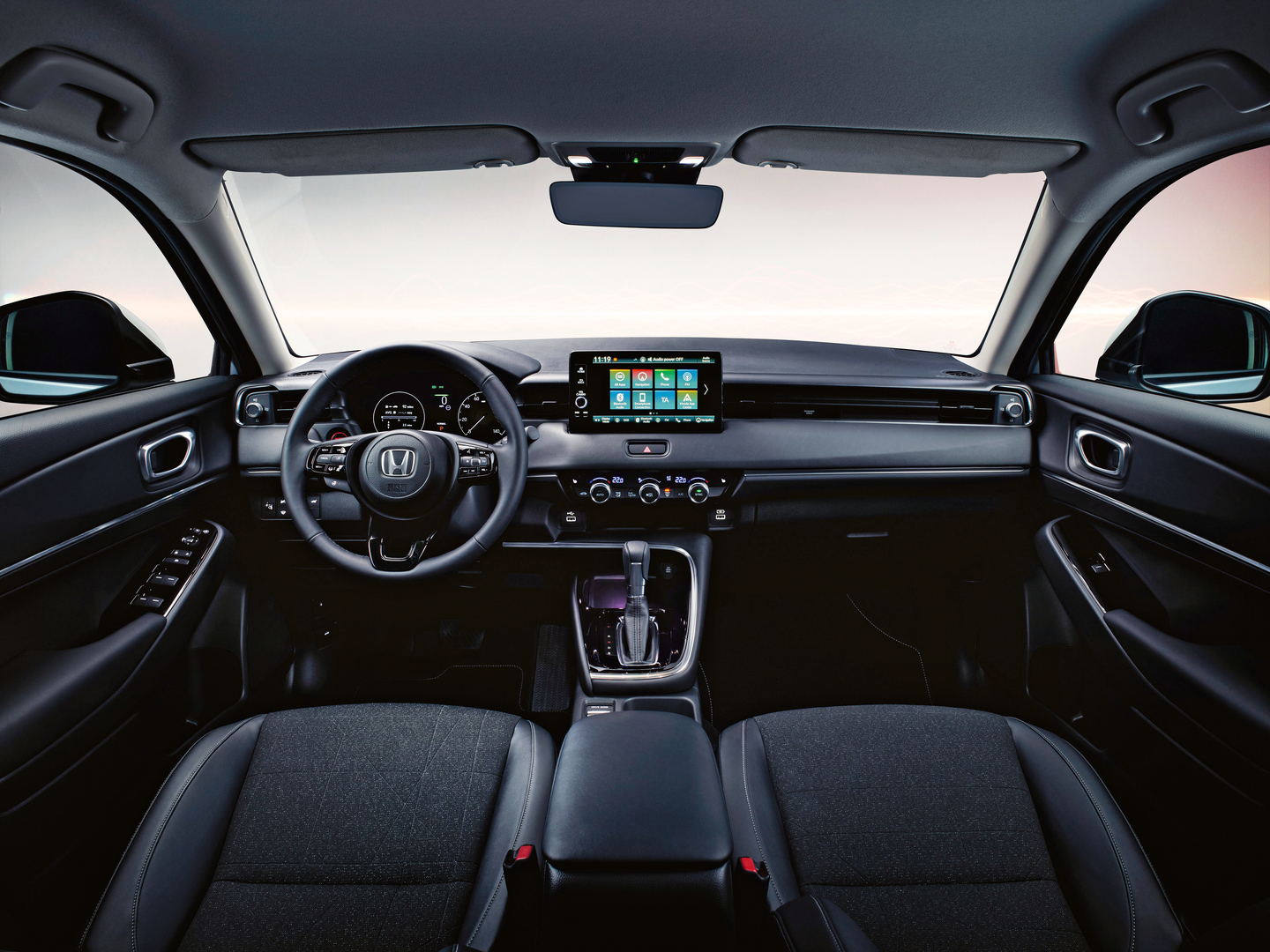 The HR-V is a next-generation SUV offering the elegance of a coupé with a high level of space utilisation in a compact size. This is achieved through the manufacturer’s centre tank layout, which extends cabin space and plays a key role in seating four adults comfortably. All interior design elements are dedicated to creating a generous and spacious feel. The horizontal instrument panel and flat lines on the bonnet provide uninterrupted visibility. The exterior combines the confident stance of an SUV with the streamlined proportions of a coupé.