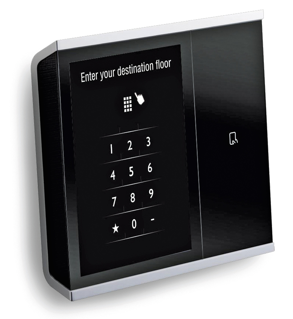 Thanks to a new destination-oriented system, this updated lift-operating panel ensures that users reach the desired floor the quickest way possible and thus more efficiently. It is set at an ergonomically engineered angle, which improves handling and makes it significantly easier to use. The high-quality, robust aluminium frame, which holds the upper and lower horizontal edges, ensures that the operating panel suits any surroundings.