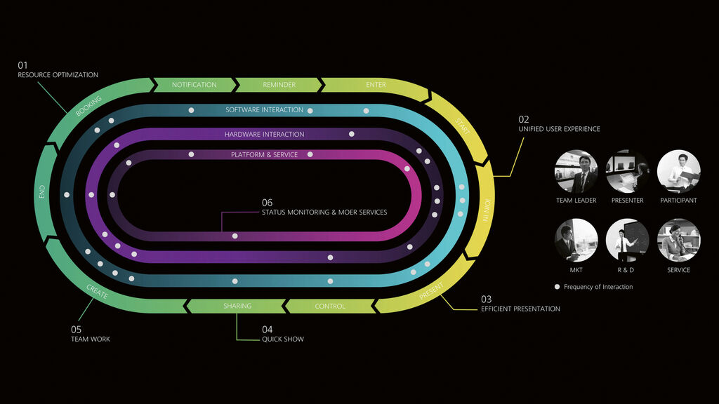 As part of the Global Conference Service Design project, 7,300 meeting rooms in 173 countries were refurbished to help employees plan, collaborate and conduct remote HD video conferencing, regardless of local circumstances. Conference rooms were classified, hardware standards defined and software solutions developed for different scenarios, customer requirements and hardware equipment for this purpose. For example, rooms could be easily booked via smartphone and notes on the whiteboard be saved directly by scanning a QR code.