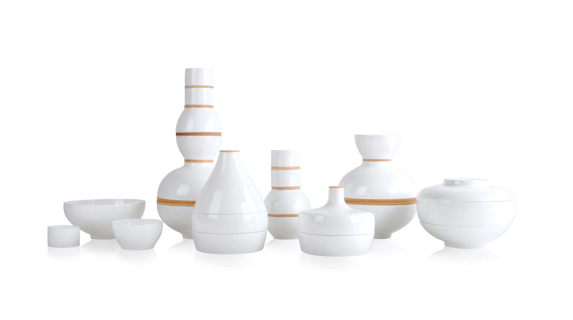 Fine bone china combined with bamboo trims gives the Hulu tableware a distinct character.