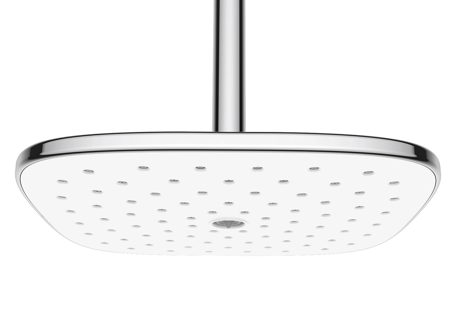 The name “Hydraulic” stands for the operating principle of this rain shower. It uses the hydraulic principle to optimise cleaning and use. The Quick Drain feature drains the entire residual water within ten seconds, which prevents long dripping after turning off the shower. Furthermore, a self-cleaning function of the nozzles complements this process and prevents staining, residues and blockages. Available in white and chrome, the rain shower flexibly blends into different bathrooms.