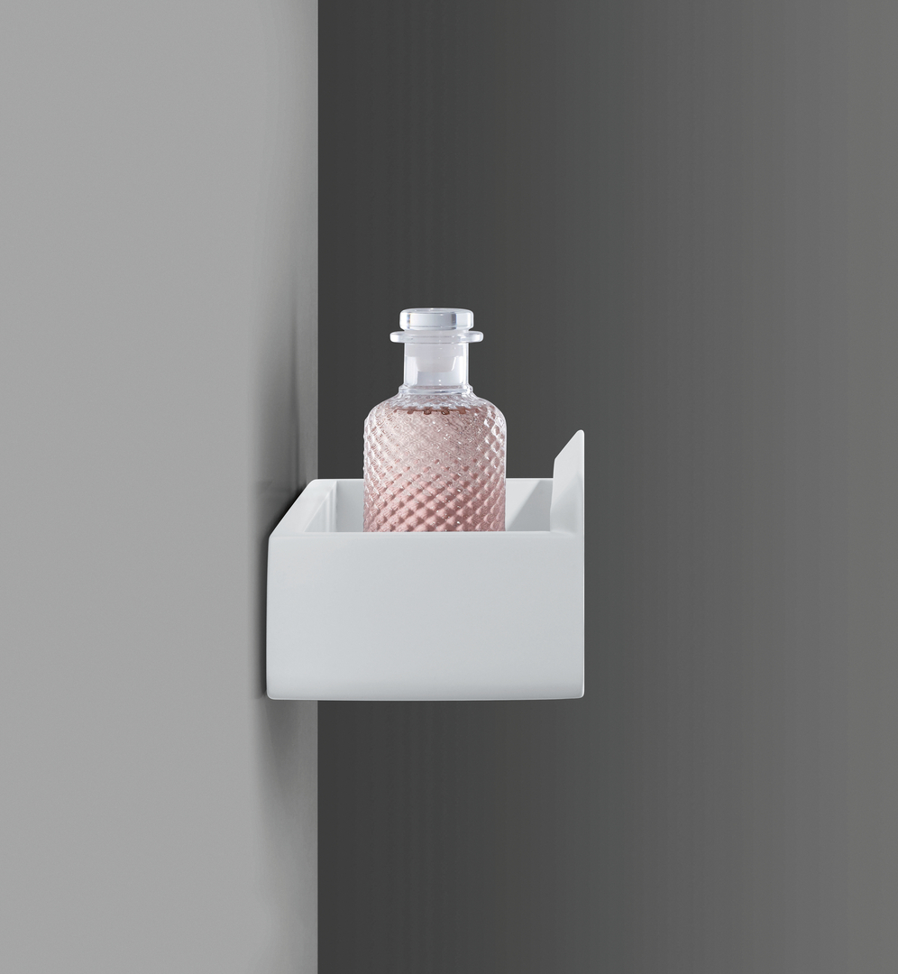This bathroom furniture followed the concept of transferring texture and colour to bathroom accessories. Designed to be in contact with water, the surfaces are used for these accessories to enhance and functionally complement the space. The series consists of various accessories such as shelves and towel racks that can be placed both inside and outside the shower space. Hylla can be combined with all the finishes, textures and colours of the rest of the Fiora products.