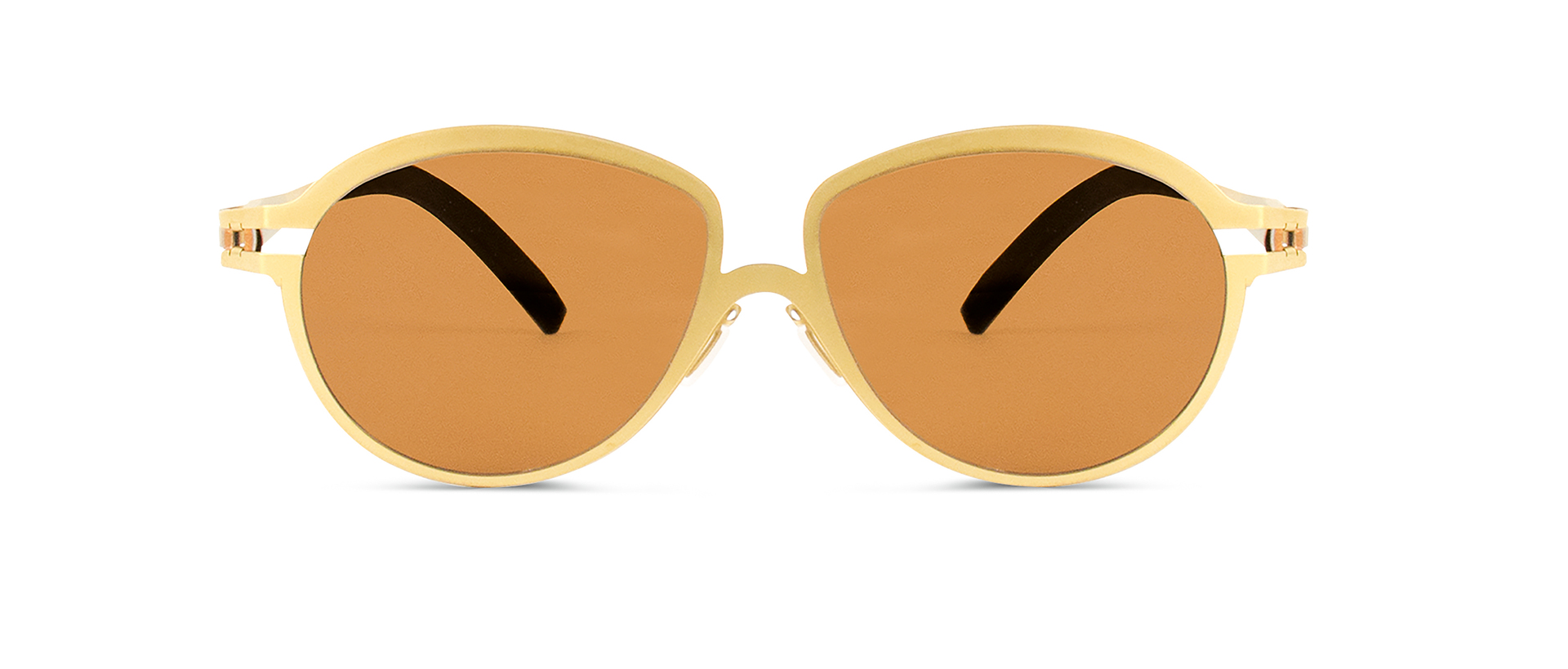 These sunglasses feature a conical hinge that rotates the temple arms into the back of the frame. When folded in, the glasses are remarkably slim, and the gently curved case easily slips into a pocket. The sunglasses also come with an ele-vated nose pad, which accommodates a lower nose bridge. The collection suits Africans or Asians particularly well, because the high-fitting eyewear harmoniously covers their eyebrows.
