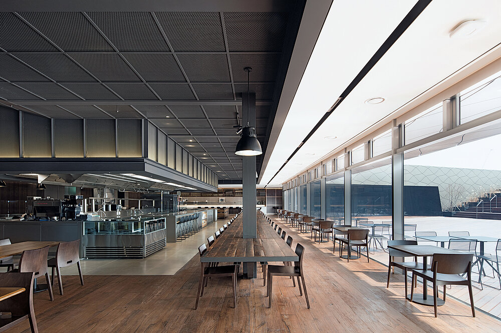 The design of the food and beverage spaces at the Hyundai Motorstudio in Goyang, South Korea, focuses on delivering a holistic gourmet experience encompassing three different eating and drinking places. The exhibition facility is programmed to help people experience the brand using their five senses. The design puts the “essence of taste” centre stage, delivering on the idea that people could eat the food the chef just made in front of them or simply enjoy watching other foods being made around them for other guests. The interior integrates a long bar in the café and an open kitchen in the restaurant.