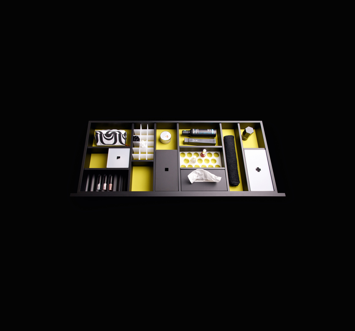 Thanks to the variable division of the space and the generous selection of materials, iBOX is a storage system for bathroom drawers that unites clarity and versatility.