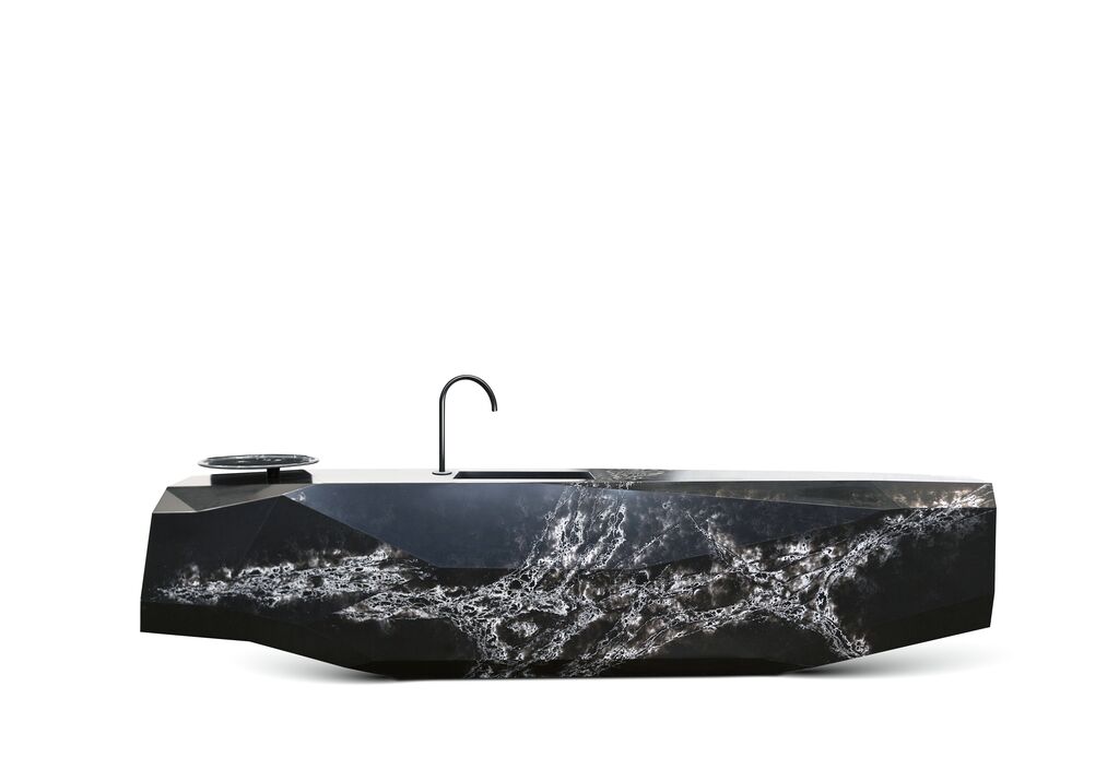 The Ice of Genesis collection fascinates with its radiant visual appeal and the independence of its design. Born from a confluence of art and design, technological quartz here projects a new statement that challenges the viewer’s imagination in each of its possible realisations. This material is suitable for versatile interior use, as it is both highly resistant and captivating with a pleasant feel.