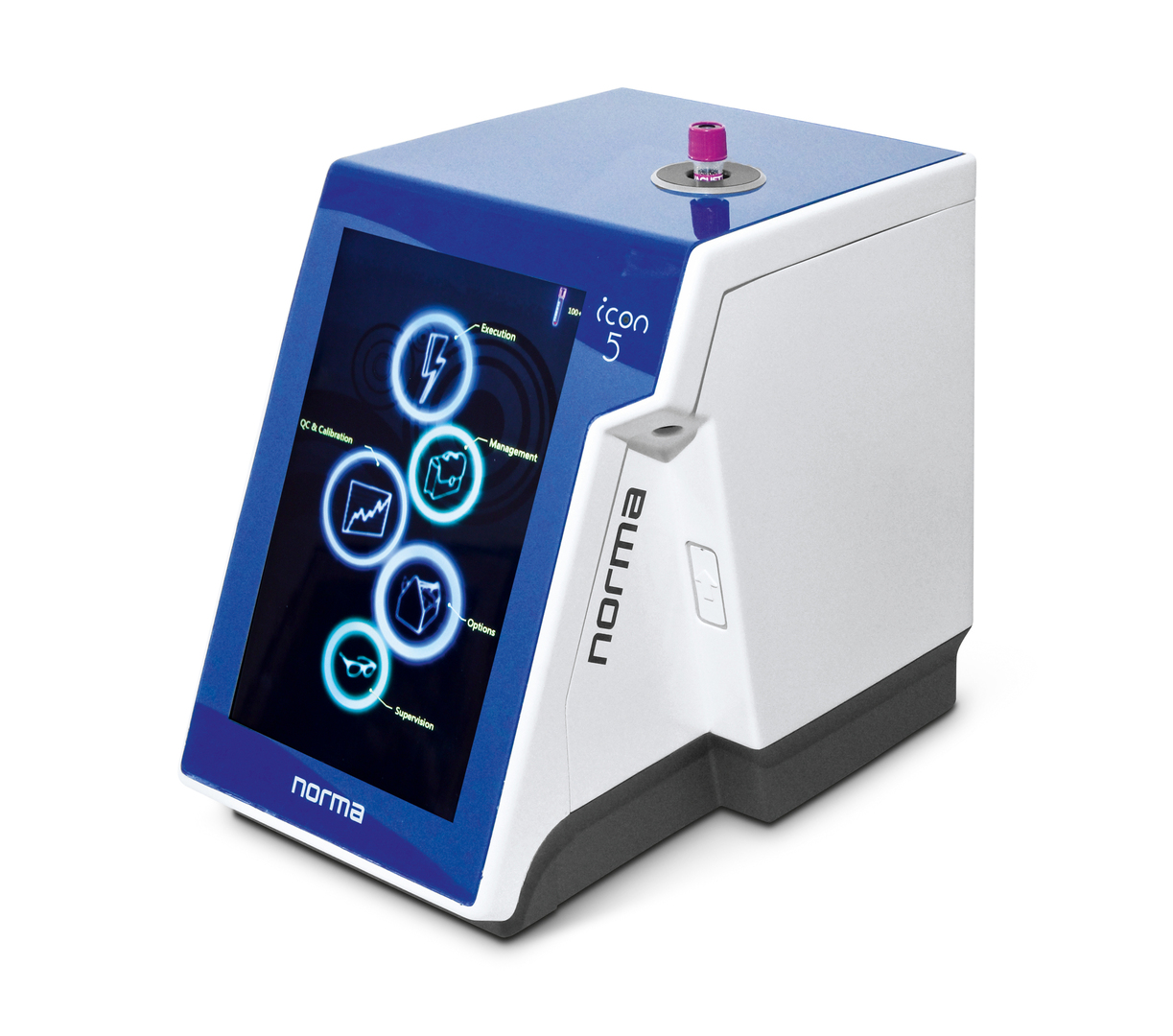 The Icon is a particularly space-saving haematology analyser, as its footprint is merely the size of a DIN A4 sheet of paper. The tubes with blood samples are inserted into a round opening at the top of the device, which is operated via a 10” full HD touchscreen. If desired, the unit can be customised with various design elements, such as colours, patterns or images, to give it a personal touch.