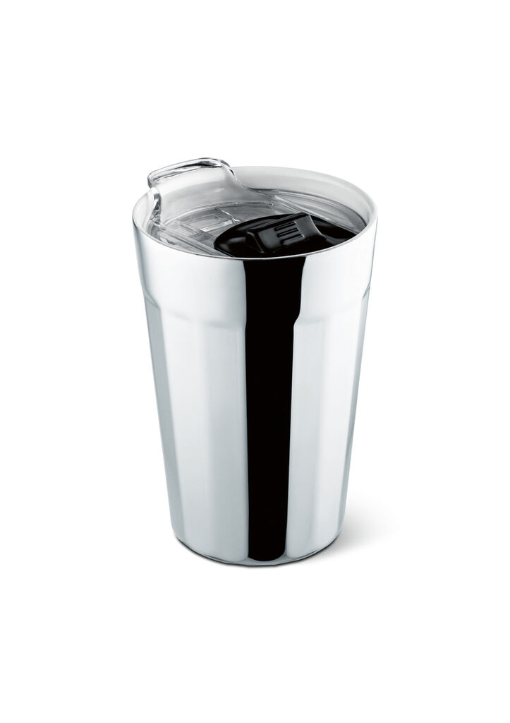 This vacuum mug is a successful contemporary interpretation of stylish design features that also deliver functional advantages.