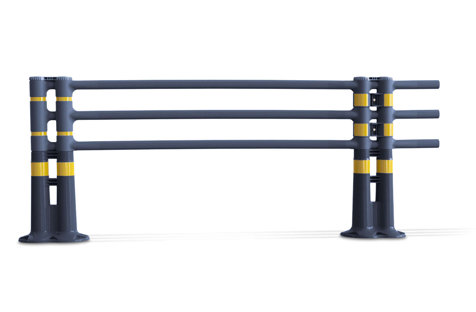 The ID311 safety guard rail stops people from, for example, crossing the road in dangerous places and helps to prevent accidents. It is made of an elastic material. If a vehicle comes into contact with it, the rail immediately bounces back into its original position ensuring that neither the vehicle nor the guard rail will be damaged. The brackets that connect posts and crossbars prevent the guard rail from shattering. ID311 offers good durability and is available in the dimensions 900 x 1800 mm.