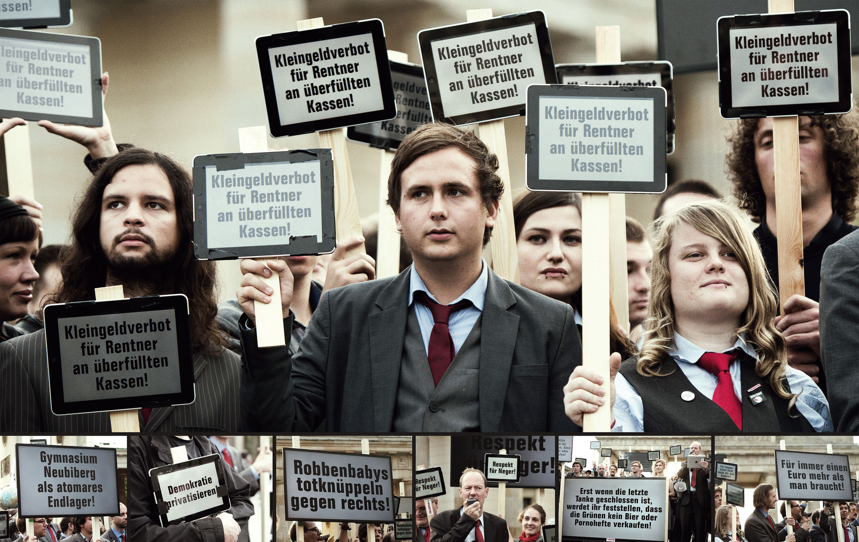 With the aim of taking an attentiongrabbing stand against major parties in the Federal Election Campaign of 2013 in Germany, the iDemo was developed as an original and media-savvy PR stunt. It realised the idea of the first interactive demonstration where a party demanded exactly what their voters wanted. People could submit their claims online using a microsite and social networks. Their demands were then uploaded live onto the digital screens at the actual demonstration, in front of the historic Brandenburg Gate in the government district of Berlin.