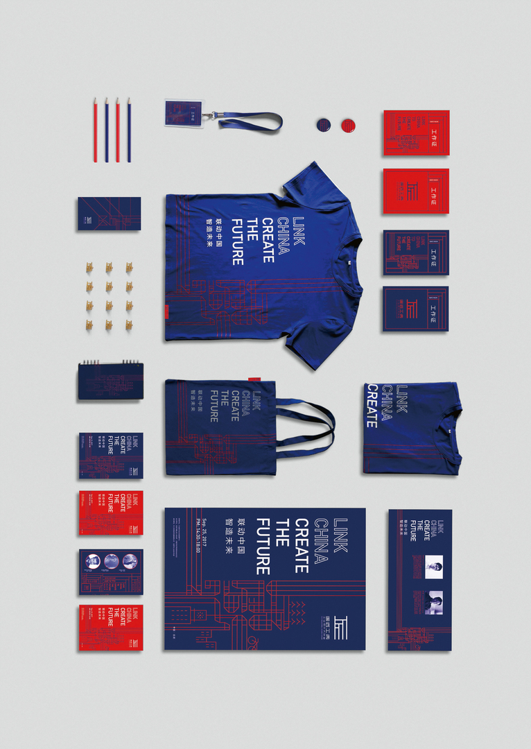 IDIC is the abbreviation for the China Industrial Design Forum. The logo, with its artistic appearance, expresses the core spirit of craftsmanship through three different meanings of the Chinese character “gong” at different levels, each showing a special ethnic look. The brand design achieves a versatile appearance through the wide-ranging use of the two brand colours, with the dominant colour switching between red and blue. In accordance with the claim “Create the future”, the key visual is an illustration of a connected city and has a futuristic feel. The bilingual approach used on different promotional materials speaks to an international target group.