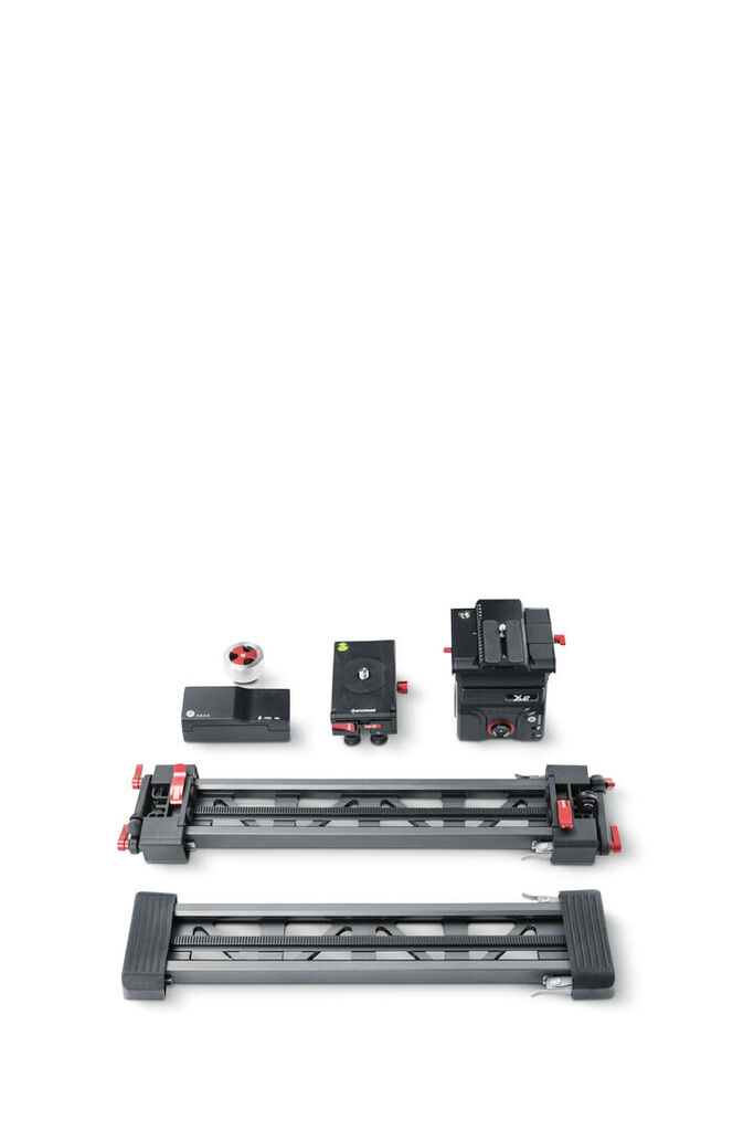 Designed for DSLR cameras, the iFootage Shark Slider Mini Complete enables camera recordings from any angle. The compact and lightweight motion control system is easily disassembled and, thanks to its modular components, can also be expanded in a versatile way. It is stowed in its own specially designed rucksack. Camera movements along three axes can be controlled manually or via an app. The tracks are fashioned from anodised aluminium to allow for smooth and silent camera movements.