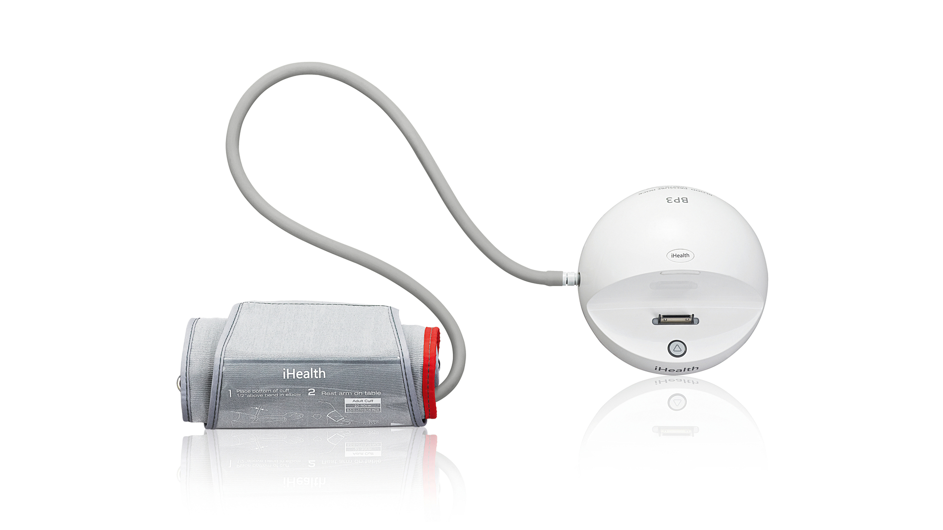 This device is a novel monitoring system for the continual control of blood pressure. It consists of a cuff and the newly developed iHealth Dock that connects to iOS-compatible devices such as the iPod. Users can thus read various measurement results on their own devices, including systolic/diastolic blood pressure and heart rate. With its rounded design, the iHealth Dock is reminiscent of a fashionable accessory that not least also symbolises an active lifestyle.