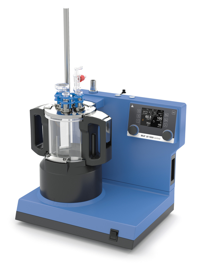 The IKA LR 1000 laboratory reactor, featuring modular construction, is capable of optimising chemical reaction processes on a laboratory scale. The reactor is equipped with an one litre container and a stirrer. A heating unit is integrated under the reactor container, while a temperature sensor controls the temperature of the medium. Rotational speed and temperature are shown on a clearly arranged digital display. All processes can be monitored and documented from the PC via a USB port. The reactor is dishwasher safe and thus easy to clean.