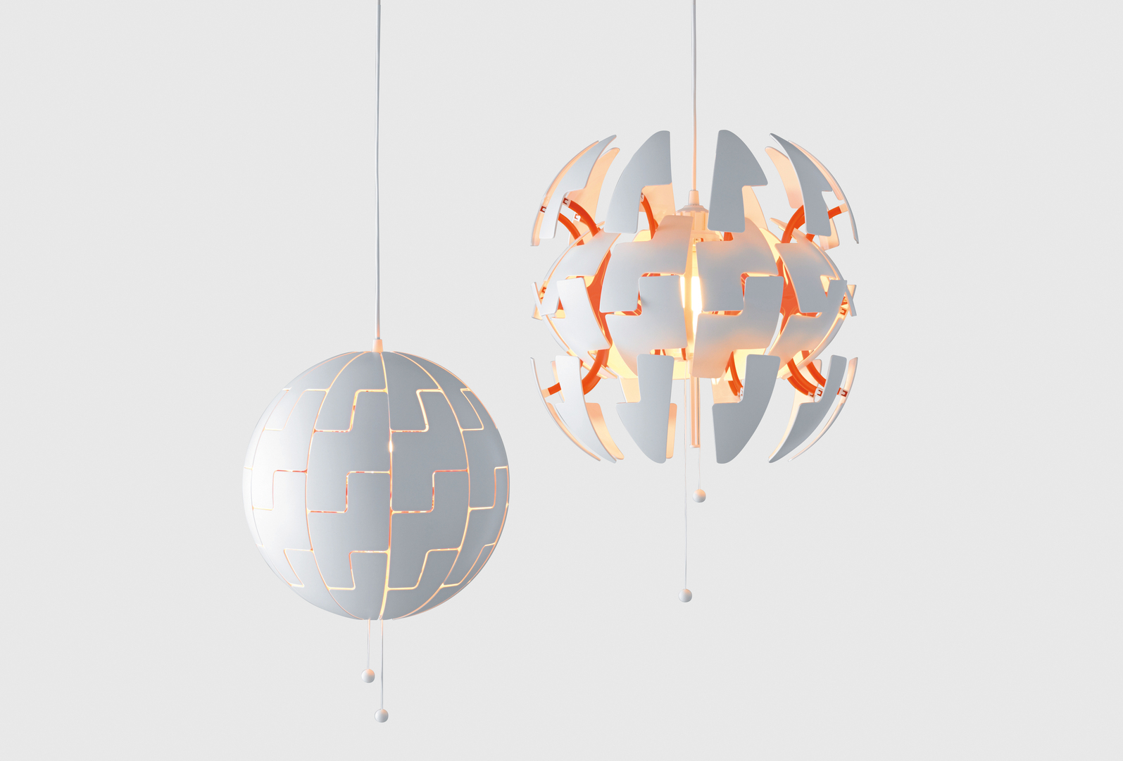 The PS 2014 pendant luminaire was inspired by science fiction movies and video games. Its resemblance to a spaceship or an imploding planet yields a particular dynamic appeal. A simple mechanism changes the contour of the luminaire: pulling the strings changes the shape of the lamp shade as well as the intensity of the light. When closed, only a small amount of light finds its way out; when fully open, more light pours out and creates interesting light effects on the walls.