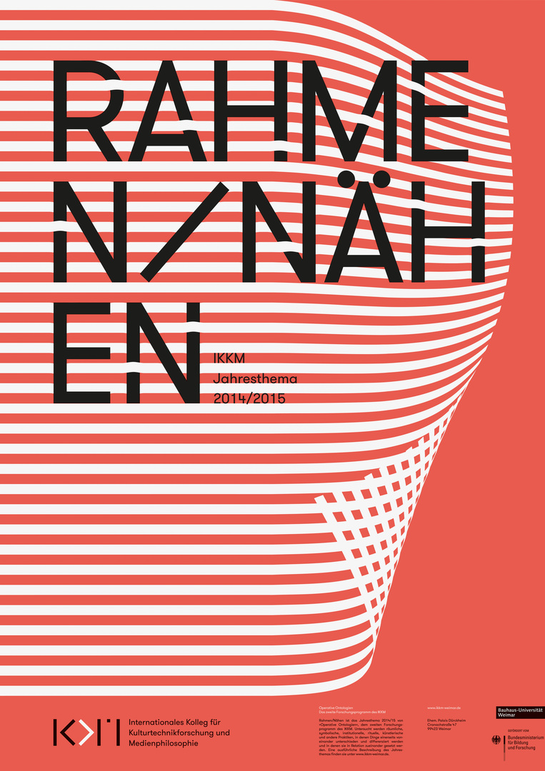 Under the heading “Operative Ontologies”, researchers at the IKKM, an international school for cultural technique research and media philosophy at the Bauhaus University Weimar, investigate significant questions related to the human sciences of our time. This poster series was conceived with the goal of adapting the existing identity of the research institute to this thematic construct and redesigning all means of communication, including the website. The main task was the development of visual leitmotifs in order to typographically interpret abstract media-philosophical meta themes.