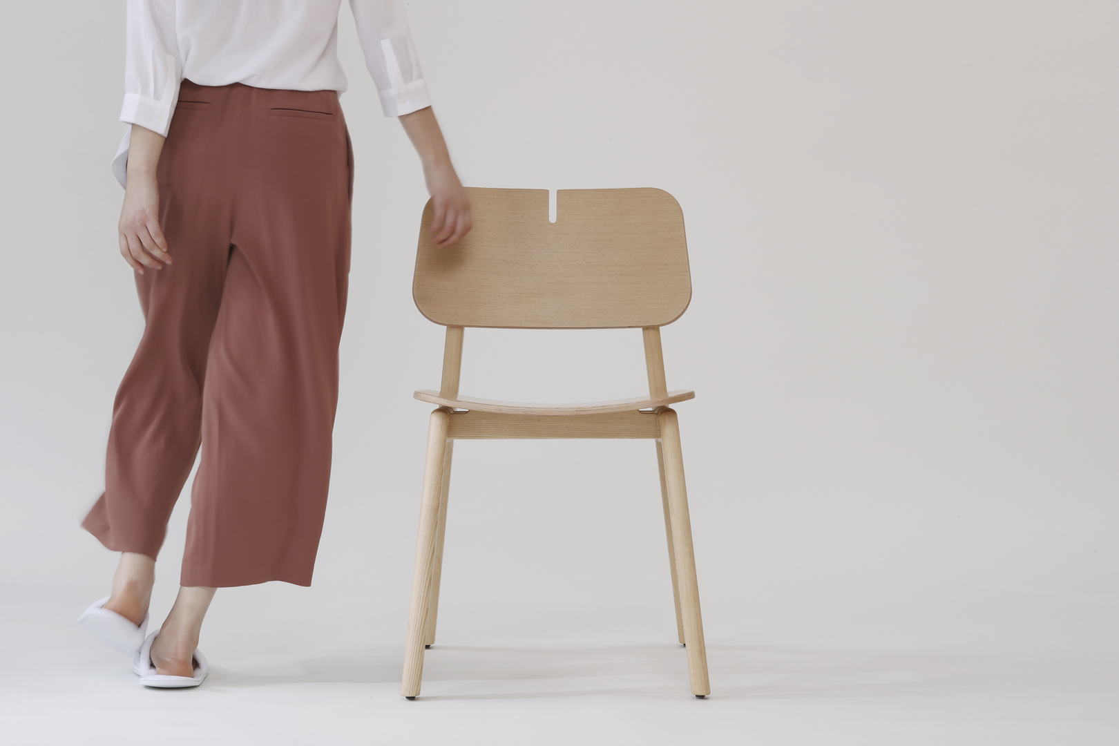 Im Chair is inspired by the concept of ‘im’, which means “meeting for the first time”. It is designed with detachable, interchangeable cushion backrests, and provides a convenient and comfortable cushion solution by allowing the backrest type to adapt to changing temperatures of different seasons. For example, the backrest will provide warmth in the winter and cool in the summer. The choice of natural ash wood material and ergonomic design with rounded corners produces a friendly and harmonious feel in Im Chair. The bronze aluminium fastener feature allows the cushions to be easily fastened to the chair and adds to the beautiful, minimalist design. The cushion is made of a customised sponge and aluminium-plated during the moulding process.