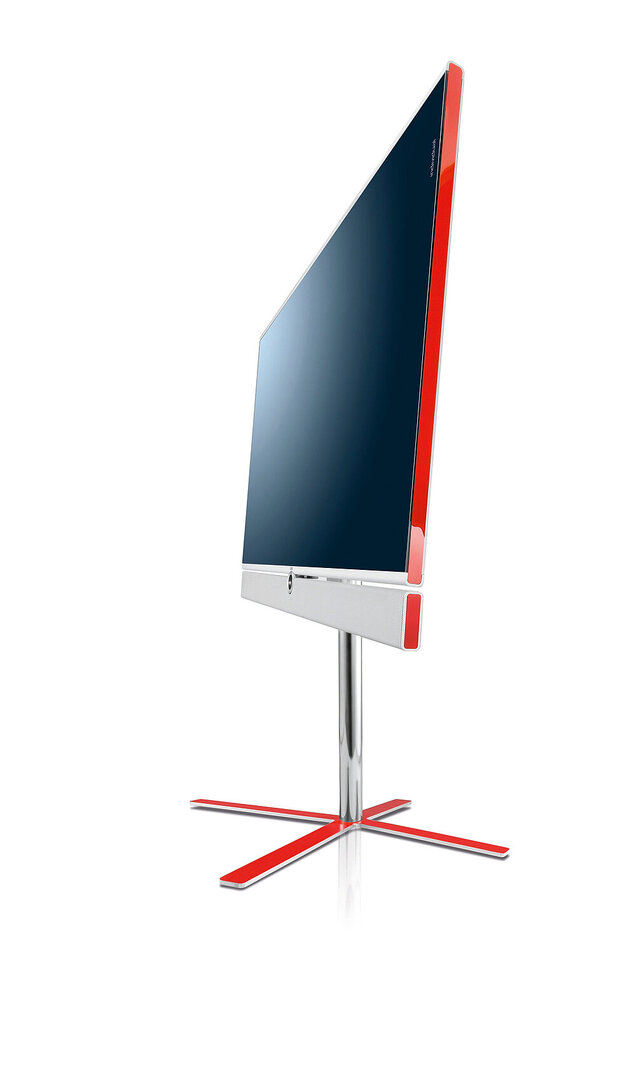 Through the use of aluminium, glass and chrome, the television by the name of Individual renders a high-quality impression. Its slim frame puts the focus on the TV picture. The back of the device has a purist design so that the television can be freely positioned anywhere in the room and still blend in well. The lateral insets and the floor stand are available in various materials and colours. Any hue from a broad colour spectrum can be applied.