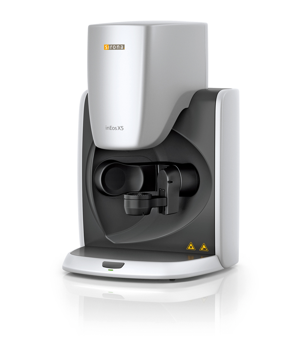 The inEos X5 extraoral scanner efficiently meets all the digital demands of a dental laboratory. Impressions, single dies, as well as partial and full arch models can be scanned manually or fully automatically. Innovative five-axis technology featuring a robotic arm, in connection with precise definition of the scanning area, reduces data quantity and accelerates work routines. The large operating range facilitates easy positioning of the model and unrestricted access when operating in the manual mode.