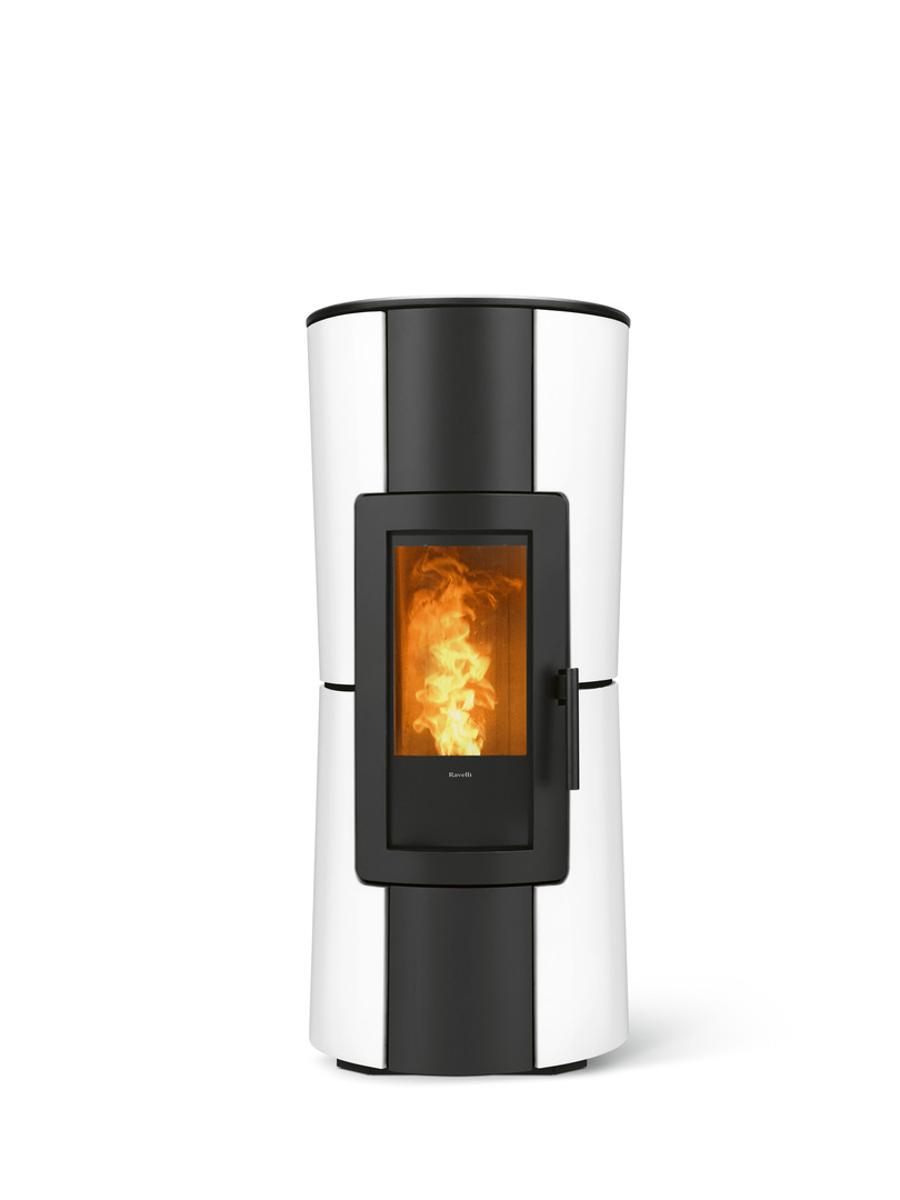 This pellet stove not only heats the room in which it is installed but uses a ducting system to also heat adjoining rooms. To do so, Infinity makes use of natural air currents and generates pleasant warmth while the fan, which can be turned on and off, heats an adjacent room. The stove is suitable for hermetic installations as it does not draw in combustion air from its surroundings. It comes with a self-cleaning brazier and safety sensors. Its large door provides a good view of the flames.