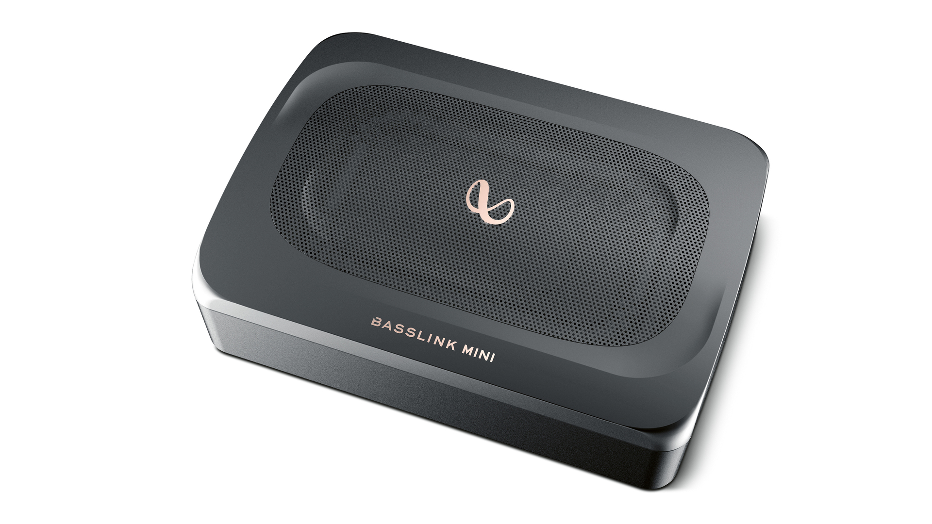 The Infinity BassLink Mini subwoofer exudes understated elegance and effortlessly integrates into various vehicle interiors.