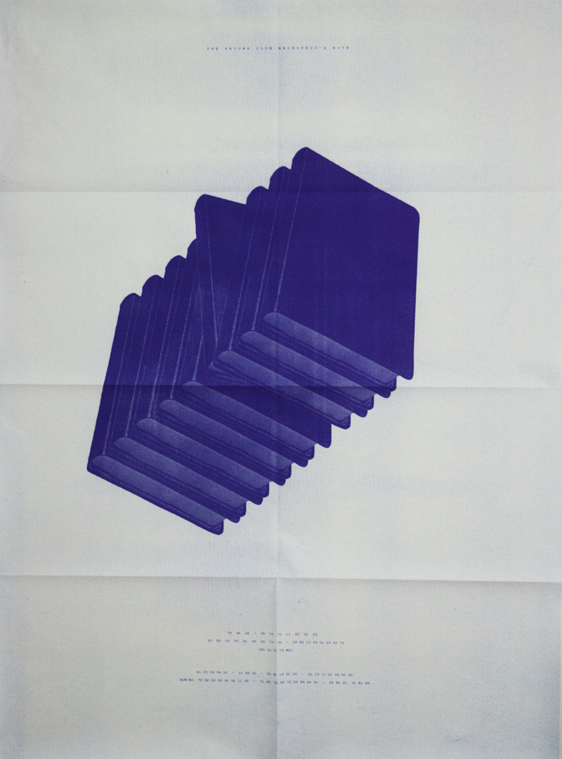 This three-part work provides material for the party of a detective story club. The first “clue” for the party is a postcard series with letters on the reverse side of the postcards. They can be arranged like an alphabet puzzle and are then turned over to decipher the invitation text. The second part of the work is a large-scale poster for outdoor use, the numerical code of which can also be deciphered as an event announcement. The person who, at the party venue, finally discovers the small hidden print on an indoor sign, which is the third part of the work, will receive a gift.