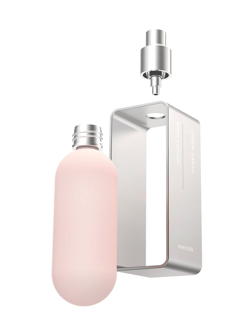 Innerbottle is made from a specially formulated silicone, which can be completely incinerated and recycled into silicone oil, while the outer packaging (external bottle) can be reused again and again. This keeps the outer shell clean so it can be fully recycled, while the inner barrier – made from specially formulated 100% BPA-free silicone – prevents oxidation and denaturation of content, keeping it safe until the final use. It leaves less than 2% of residue and can be completely incinerated or recycled to silicone oil after use.