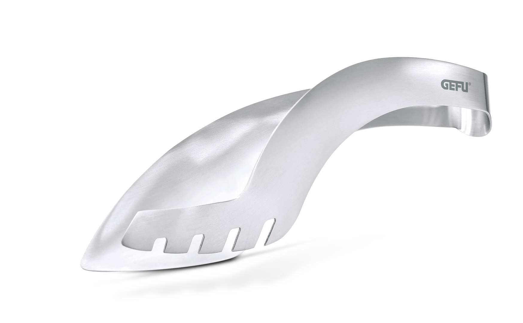 The elegant pasta and salad tongs Inspiria are made of glossy polished stainless steel. The right side of the tongs is spoon-shaped so that the sauce is directly served along with the salad or pasta. In addition, the curved design of their handles prevents them from slipping into the bowl or pot. The kitchen tool features balanced elasticity, which ensures optimum power transfer when they are pressed together.