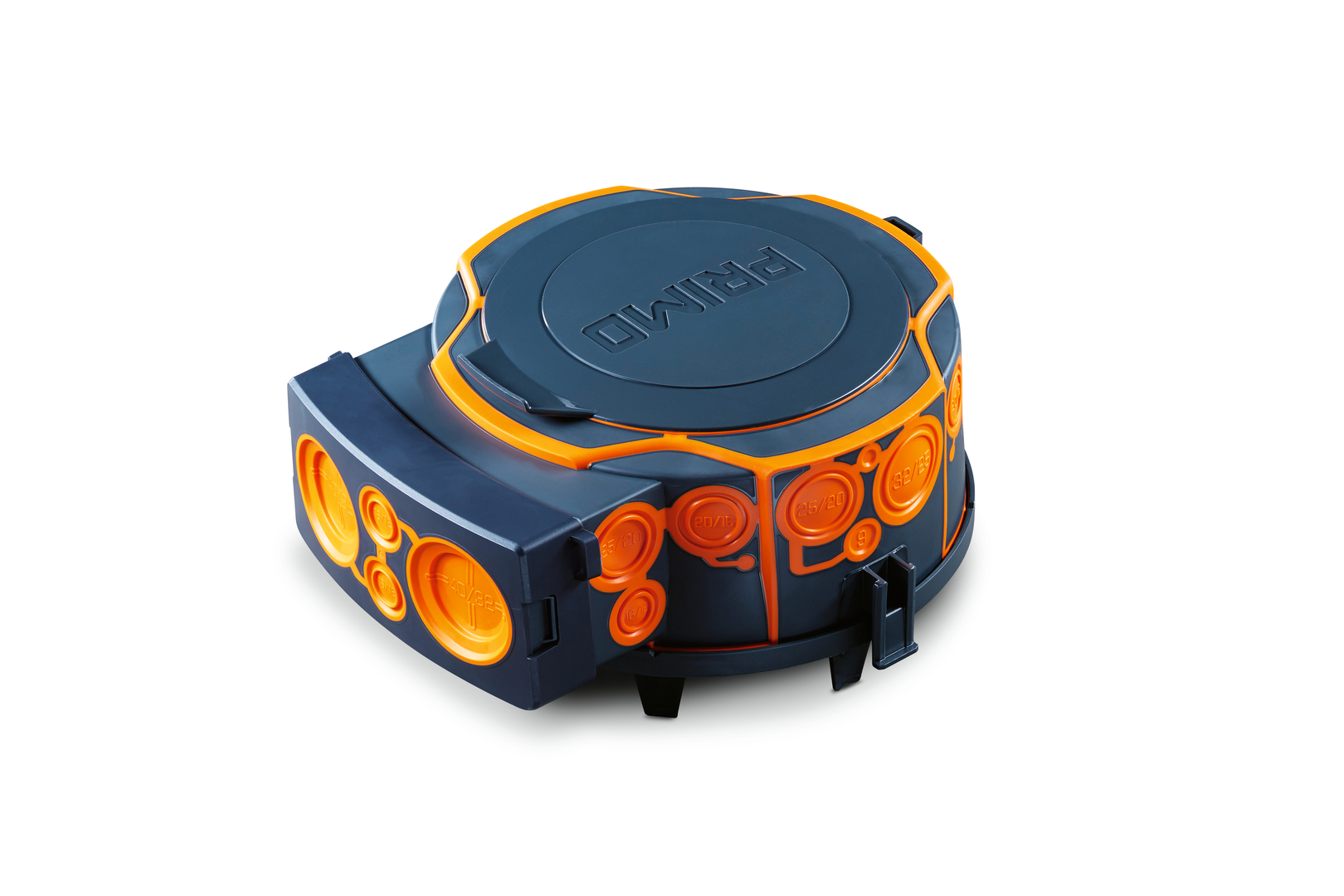 The Primo XL product family was designed for electrical installations in concrete structures. The focus of development was improved durability for use on rough construction sites and optimal support during installation work. For example, the number of cable entries in the housing has been increased and their design changed. The proportions of the cases represent a very good balance between the use of materials and stability. A new colour scheme, a design language of dynamic lines, tight surfaces and the concise use of the brand logo are a further development of the manufacturer’s existing products.