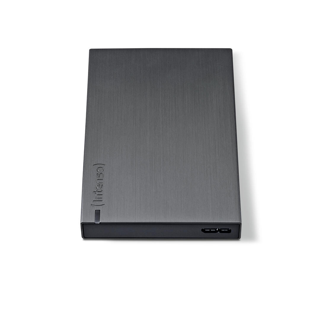 The external hard drive Intenso 2.5” Memory Board is a state-of-the-art memory solution for transferring and securing photos, videos, music and other data. Its housing features a contemporary design, is made of premium aluminium in an anthracite hue and is easily stowed away thanks to its small dimensions. The modest logo engraving, in combination with the blue LED display, is another optical highlight. Due to its compact design, the hard drive uses very little space on a desk.