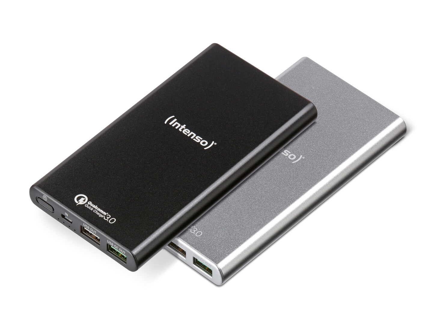 The Intenso Powerbank Q10000 mobile charger offers a high degree of effectivity for mobile charging processes. With the Quick Charge 3.0 function, it charges compatible devices up to four times faster than conventional chargers. Thanks to its shape-variable lithium-polymer battery, the powerbank is very slim and can thus be placed under the mobile phone during the charging process or stowed away with the phone in a jacket or trouser pocket. Available in the colours silver or black, it matches well with any connected terminal device.