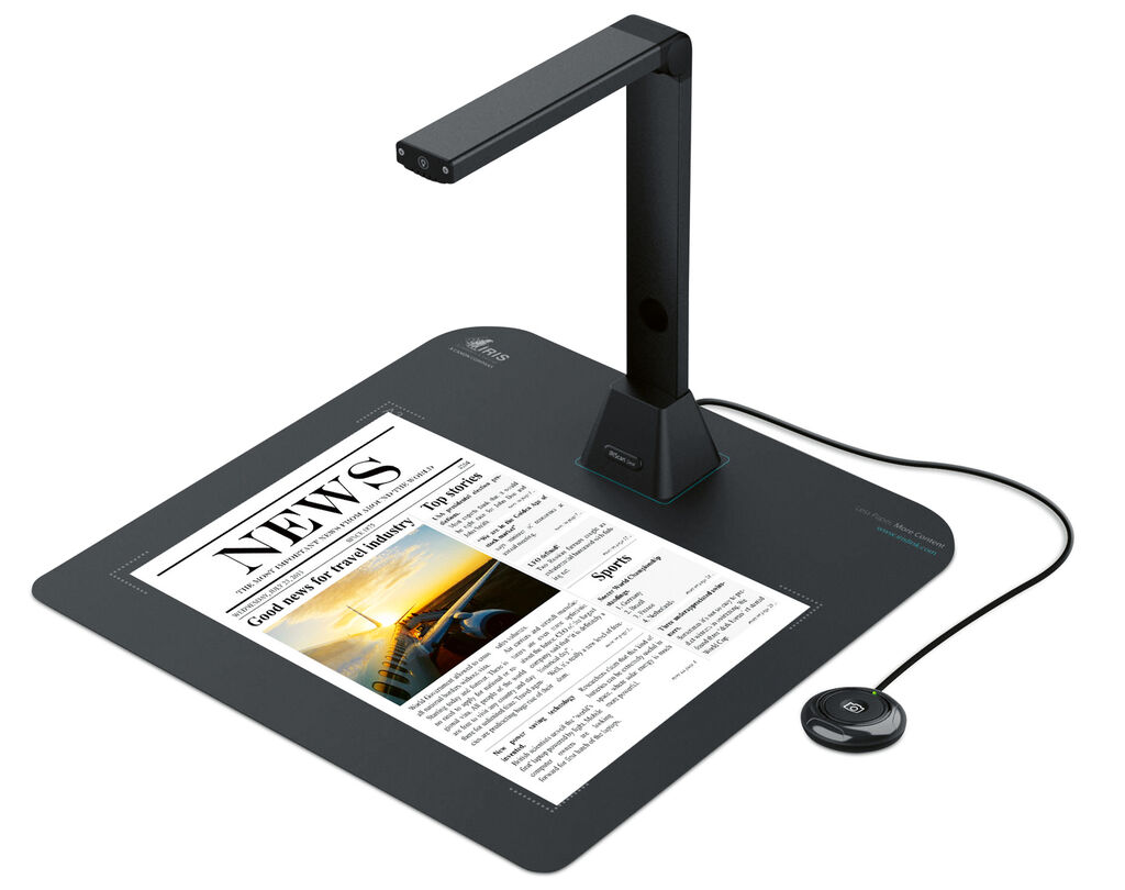 IRIScan Desk 5 Pro is a USB-powered desktop camera scanner suited for any type of document up to A3-format. Aside from the automatic page detection function, automatic straightening or the finger removal feature, the software also integrates OCR, which converts scanned documents into searchable PDFs or editable TXT, Word and Excel formats. Moreover, it incorporates simultaneous multi-camera video and audio recording.