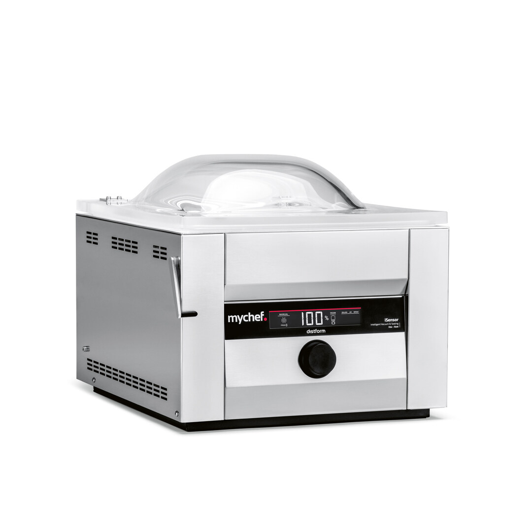 When developing the iSensor vacuum packing machine, optimisation of the user experience was the main focal point. Operation of the machine is correspondingly simple: the user needs only to place the filled bag in it, and algorithms calculate the optimal vacuum and the level of sealing. Selection of pre-set programmes and control of the machine are effected in manual mode via a rotary button.