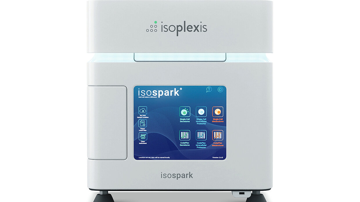 IsoSpark is a system for functional proteomics. The system is supported by an innovative single-cell functional proteomics technology, the proteomic barcode chips, which allow researchers to phenotype each immune cell based on the range of its functional proteins. The software-based IsoSpark detection system provides biological data at the single-cell level and the ability to query the secreted proteome, phosphoproteome and metabolome of single cells.