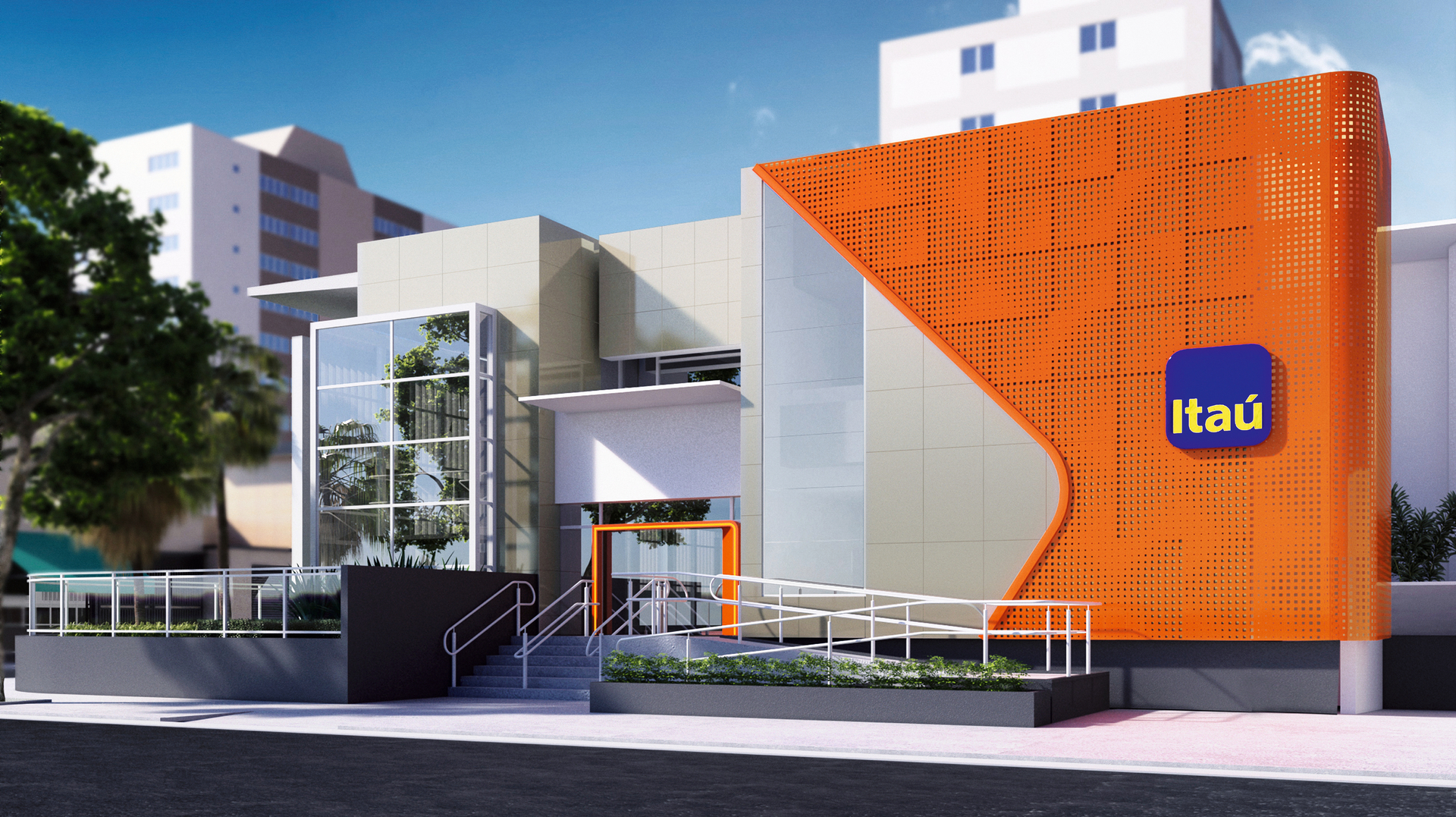 The design of this facade system for branches of the Brazilian bank Itaú builds on the brand’s heritage but gives it a friendlier and more dynamic look. The facade design is intended to encourage people to enter the respective branch. In addition, thanks to a modular system, it is meant to be sustainable as well as easy to install and maintain. The system consists of perforated panels in a total of five different shapes which can be assembled simply by clicking together to create the building’s facade.