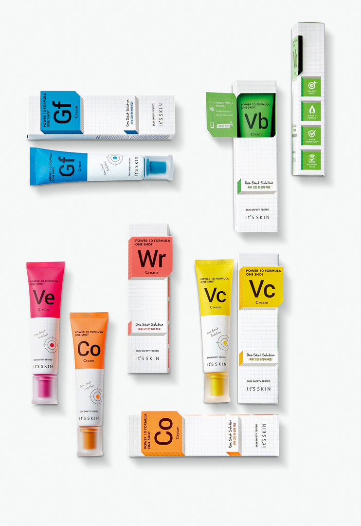 To visualise the effects of the four new products in the extended Power 10 Formula skincare line, this packaging design uses expressive chemical element symbols as main motifs, paired with vividly fluorescent accent colours. The idea of adding lattice patterns in the background and distinguishing the products through letters that look like symbols of chemical elements lends emphasis to the image of being trustworthy and safe. To help consumers understand each product even better, the packaging also comes with a window design in the shape of an element symbol, inviting users to open the window and access additional product information.