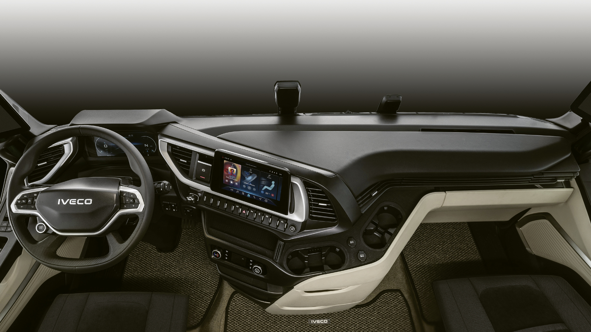 IVECO S-WAY MY2024 is a project by the manufacturer that enables the front of the vehicle to be adapted to reflect the fleet owner's brand identity through individually selectable and combinable finishing components on the grille. The front design is complemented by a new company logo. In addition, the cockpit has been redesigned based on in-depth UX research and is divided into three areas: a technology-oriented driver's zone, a warm-coloured passenger area with a lounge character, and a central functional storage area that serves both driver and passenger.